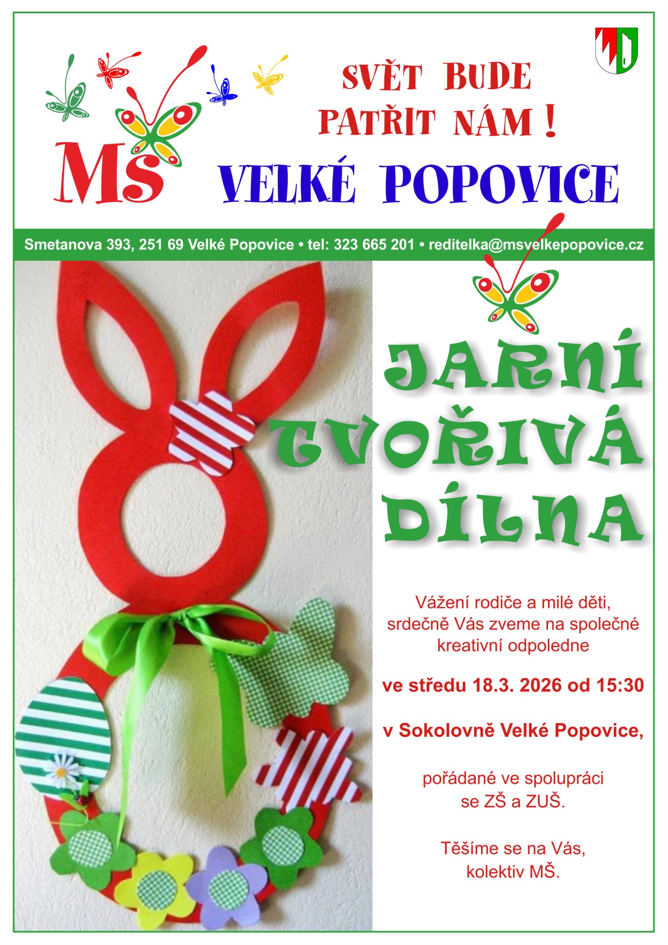 Bc. Petra Dudová; e-mail: reditelka@msvelkepopovice.cz, telefon: 724 876 395